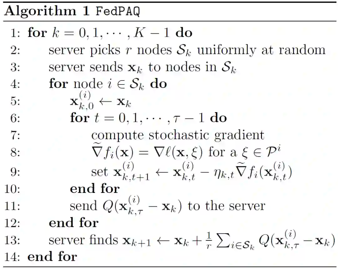 [6] Reisizadeh A , Mokhtari A , Hassani H , et al. FedPAQ: A Communication-Efficient Federated Learning Method with Periodic Averaging and Quantization[J]. arXiv, 2019.https://arxiv.org/pdf/1909.13014.pdf.