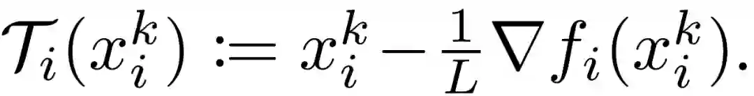 本文方法的核心是找到Τ的不动点,即找到向量 x* 满足 Τ(x*)=x*。可以通过在每个节点重复应用Τ_i,同时进行平均化处理以达到共识来最终获得目标解 x*。本文作者考虑,经过多次迭代后,每个客户端节点将其变量同步传递到远程中央服务器中。然后中央服务器计算所接收到的向量的平均值并将其广播到所有节点。