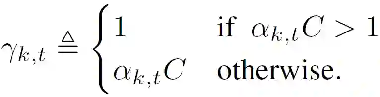 作者提出了两种计算概率 γ_k,t 的方法。一是均匀抽样,γ_k,t=C/q。二是加权随机抽样,