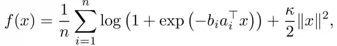 作者选择经典分类问题的逻辑回归进行实验。相应的目标函数如下: