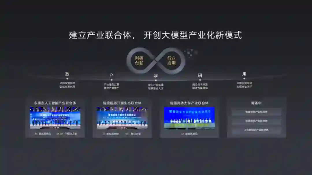 开创了一条大模型产业化落地的新模式,即围绕某个领域的大模型成立产学研用的产业联合体,打通科研创新到产业落地整个流程