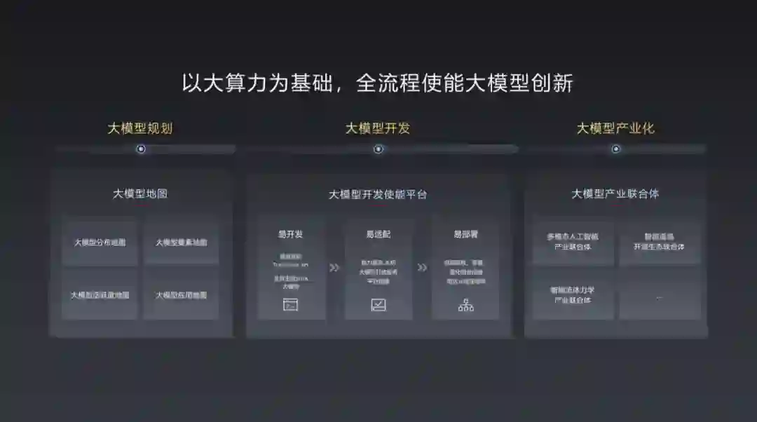 ,有序引领创新方向;其次,大模型的开发是基石,昇腾构建的一站式