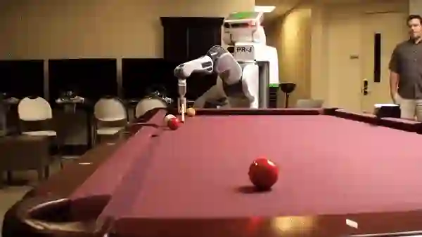 打台球也是个「高手」,在击球之前,它会先计算一下方位,智力水平了得:
