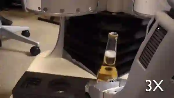 这个技巧的实现也是出于实用功能,当 PR2 想携带很多物品的时候,只有两只手是不够的,所以研究人员想让它也「背上」一个单肩包。PR2 是根据自己的 CAD 数据计算出来的这个姿势,然后人就可以将许多的罐子放进包包里,让 PR2 放在肩膀上。