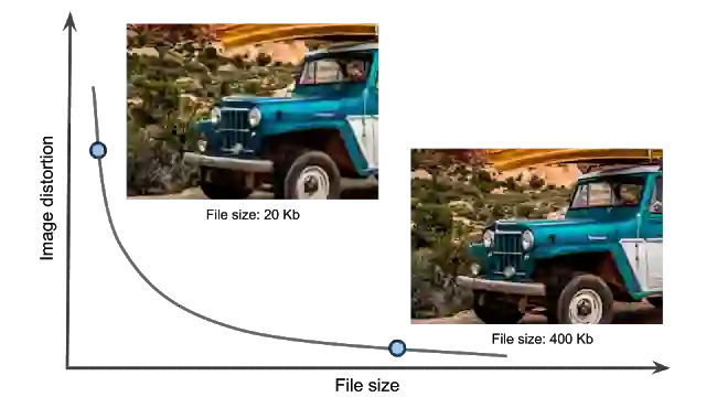 图像压缩中图像质量和文件大小之间的权衡:理想情况下,图像失真程度和文件大小都应达到最小,但这两者存在根本性冲突