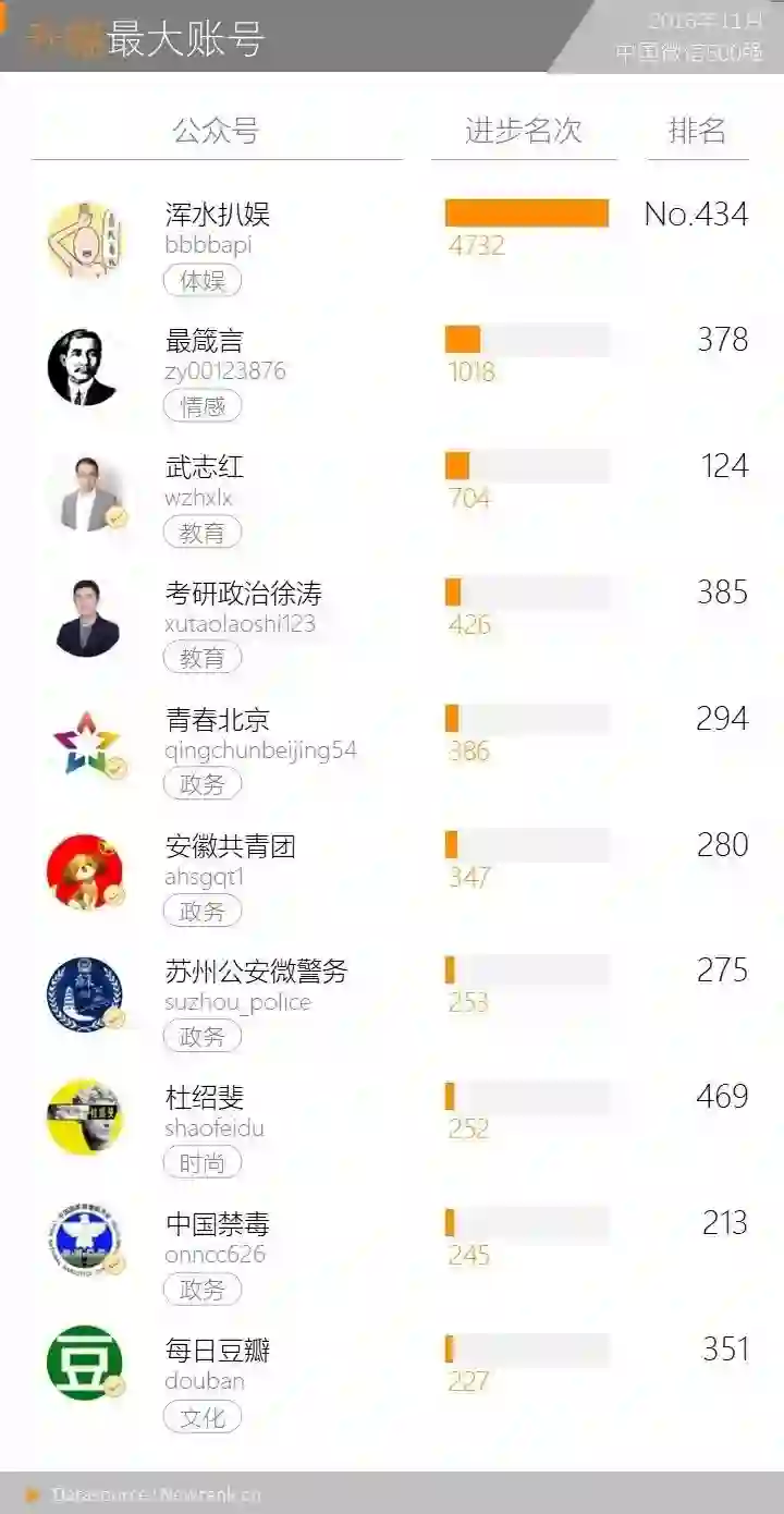 请认准由新榜(newrank.cn)认证出品的中国微信500强月榜、年榜。