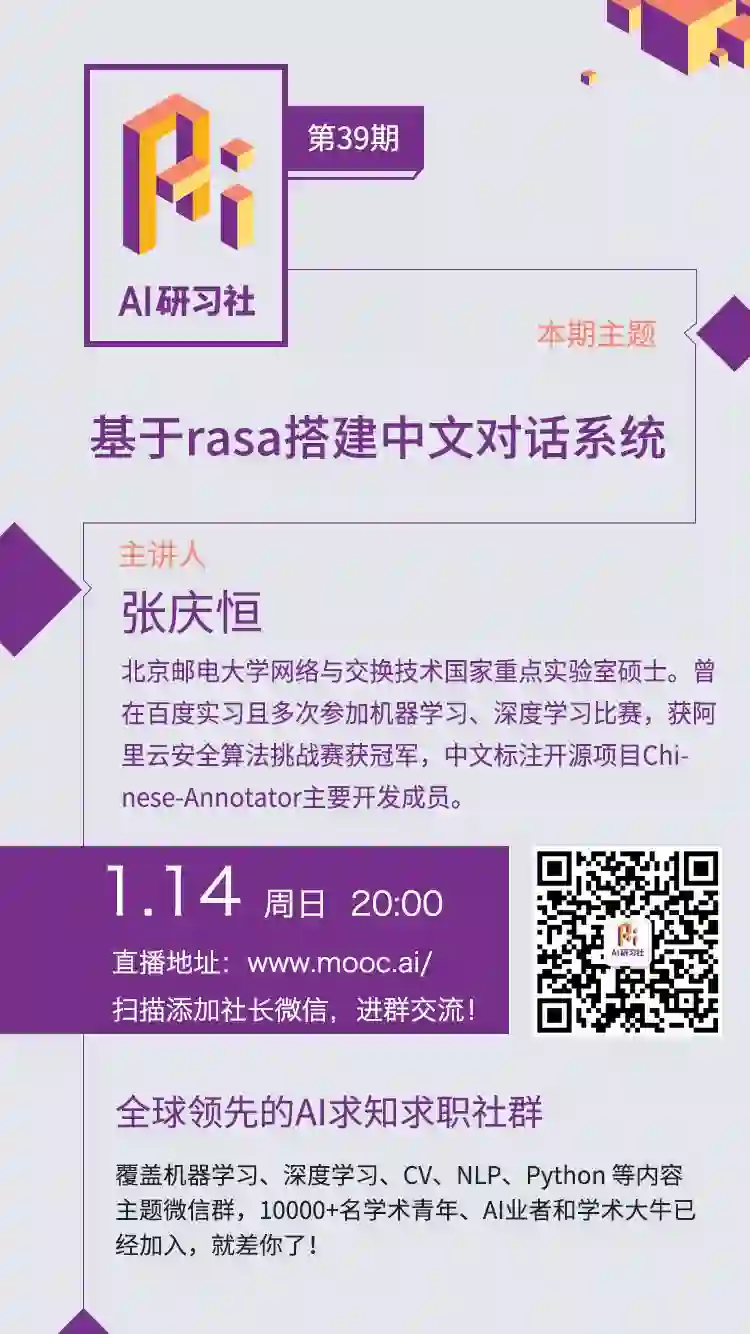 对话系统是自然语言处理的一个热门话题,而自然语言理解则是对话系统的关键组成部分,现有的很多自然语言理解工具往往以服务的方式获取(Google 的 API.ai, Facebook 的 Wit.ai 等),使用这些服务往往需要向服务提供商提供自己的数据,并且根据自己业务调试模型很不方便。因此,本次公开课主要分享本人基于 rasa nlu 构建自己的自然语言理解工具,并结合 rasa core 搭建对话系统框架的一些经验,方便初学者入门,加深对对话系统的理解。