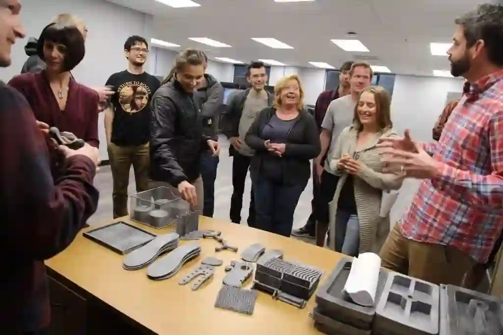 Flowbuilt 制造工厂内部的设计与研发中心负责根据扫描仪获得的数据进行鞋的设计。工厂内的快速原型与3D打印中心,负责进行鞋模的快速开发。