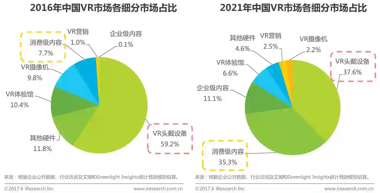 ▌内容市场将超过VR头戴设备,成为占比第一的细分市场