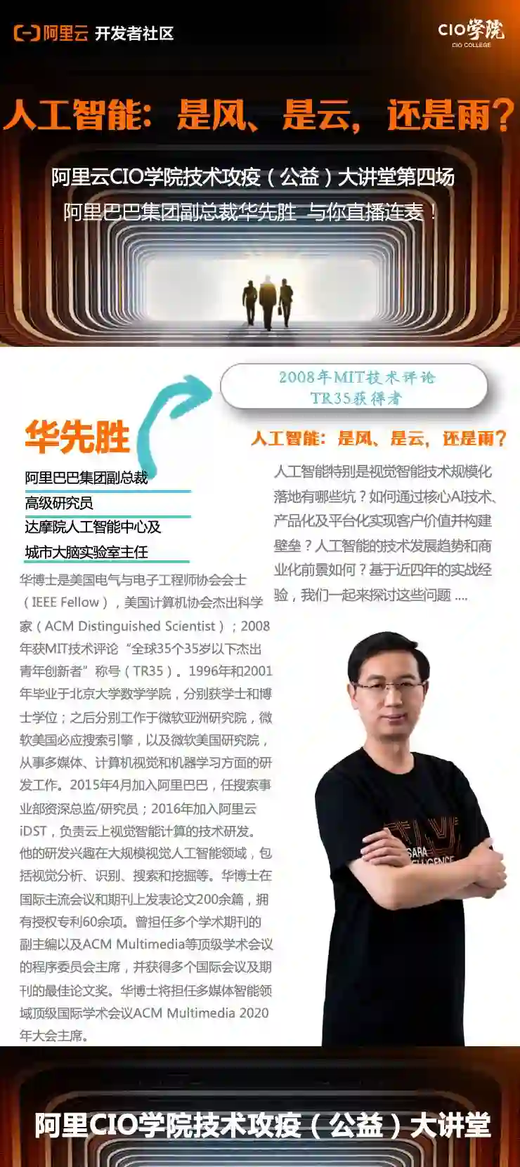 锁定阿里云开发者社区直播,对话阿里巴巴集团副总裁华先胜,共话人工智能的技术发展与商业化实践。