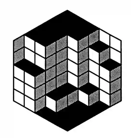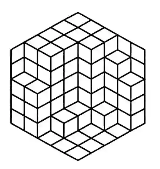 最后来个大家玩一个很有趣的题目。我们有一堆菱形的小蛋糕,现在需要用这些小蛋糕来拼满一个正六边形的盘子,如下图所示。可以看到,小蛋糕一共有三种朝向。问题来了,这三种方向小蛋糕各占了多少比例?