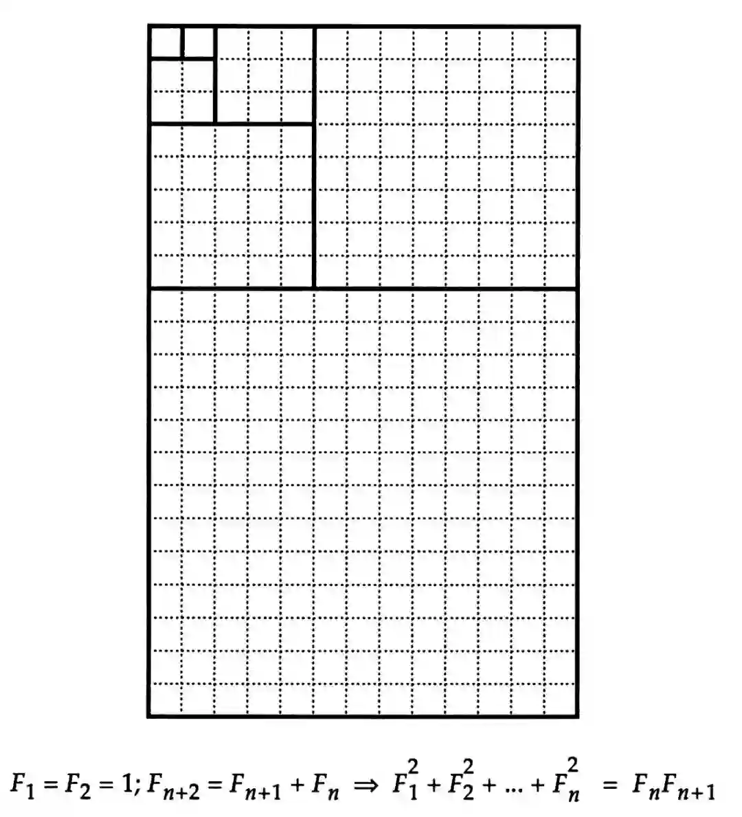 相信大家对斐波那契数列都不陌生了。1, 1, 2, 3, 5, 8, 13……任意一项为其前两项之和。关于斐波那契数列每一项的平方之和也有一条神奇的关系。