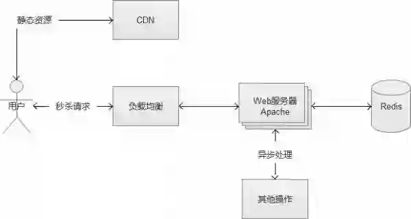 一个秒杀或者抢购页面,通常分为 2 个部分,一个是静态的 HTML 等内容,另一个就是参与秒杀的 Web 后台请求接口。