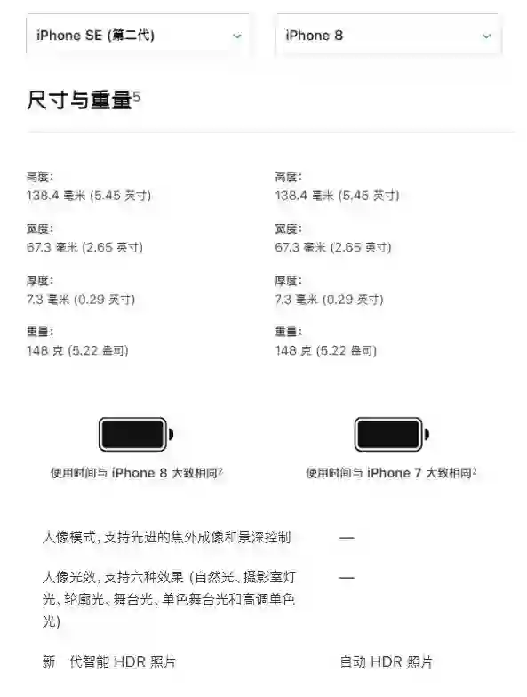 新iPhone SE很明显是iPhone8换芯机,三围 重量没有任何变化,连电池也没变化。新iPhone SE=iPhone 8=iPhone7的续航(严禁套娃),每天随身带着充电宝是少不了了。最大的区别是在SOC直接提升到了A13,A13+1334*750分辨率+单层主板,性能起飞,打游戏那肯定是杠杠的,也是名副其实的“小钢炮”。