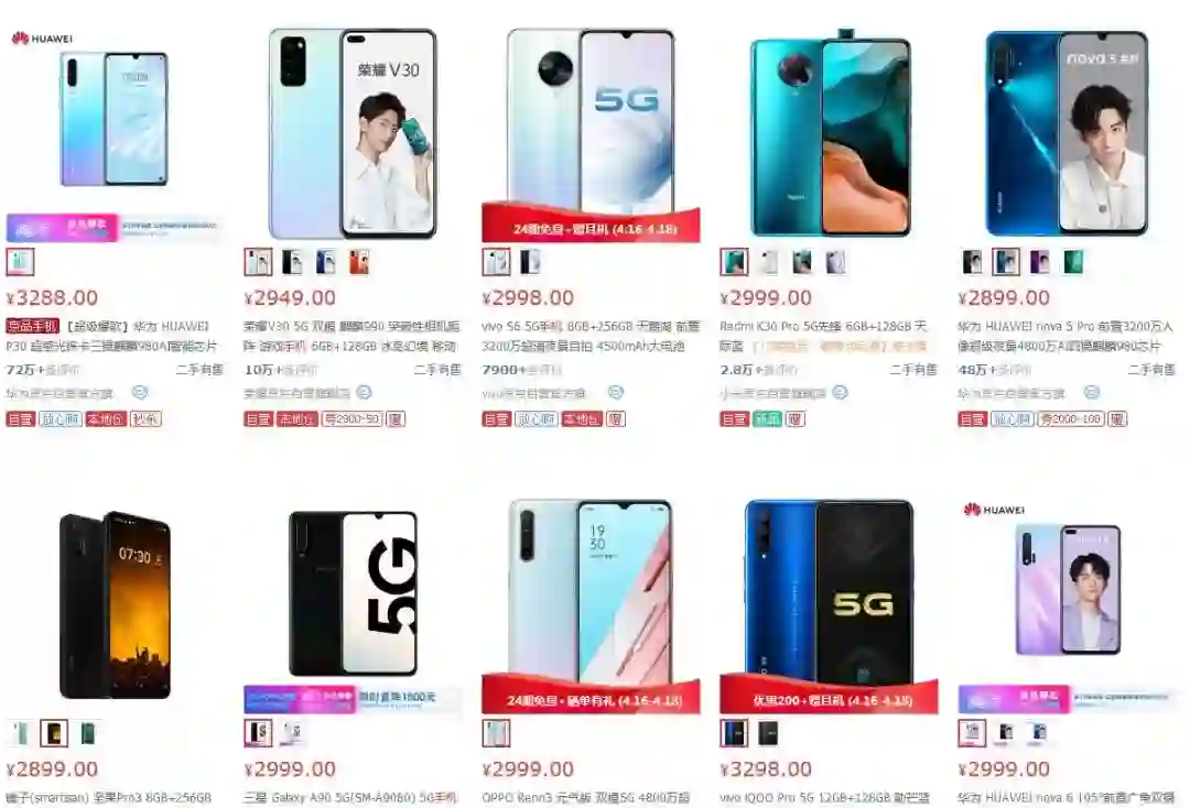 可以看到,安卓阵营目前3000几乎都是128G起步,15台手机里有8台5G手机。曲面、屏下指纹、超广角、90Hz、65W充电层出不穷。从影像层面、续航、充电、信号方面很明显竞争力不足。