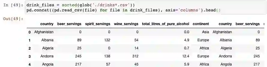 同上一个技巧一样,我们以使用glob()函数开始。这一次,我们需要告诉concat()函数按列来组合: