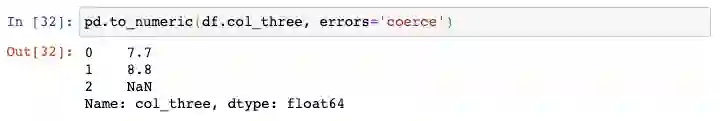 你可以对第三列使用to_numeric()函数,告诉其将任何无效数据转换为NaN:
