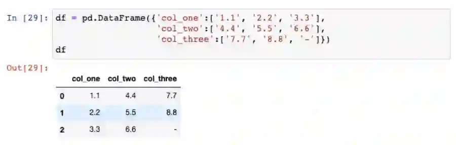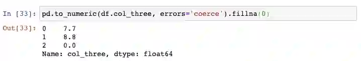 但是,如果你对第三列也使用这个函数,将会引起错误,这是因为这一列包含了破折号(用来表示0)但是pandas并不知道如何处理它。