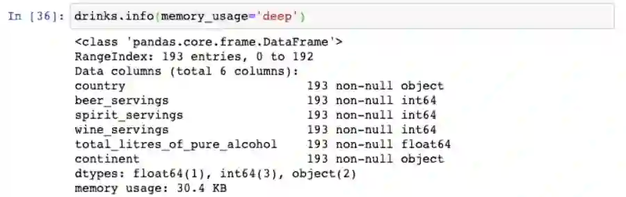 这是drinks这个DataFrame所占用的空间大小: