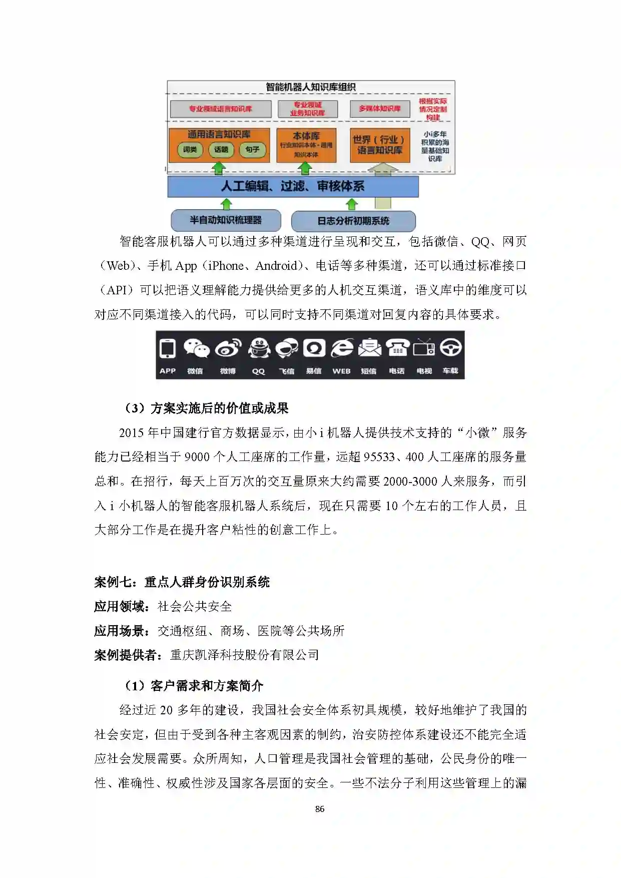 人工智能与行业领域的深度融合将改变甚至重新塑造传统行业,本节重点介 绍人工智能在制造、家居、金融、交通、安防、医疗、物流行业的应用,由于篇 幅有限,其它很多重要的行业应用在这里不展开论述。