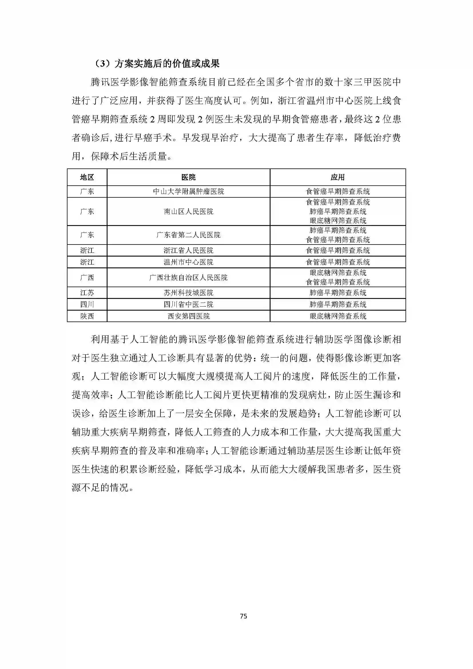 在辅助诊疗方面,通过人工智能技术可以有效提高医护人员工作效率,提升 一线全科医生的诊断治疗水平。如利用智能语音技术可以实现电子病历的智能语 音录入;利用智能影像识别技术,可以实现医学图像自动读片;利用智能技术和 大数据平台,构建辅助诊疗系统。