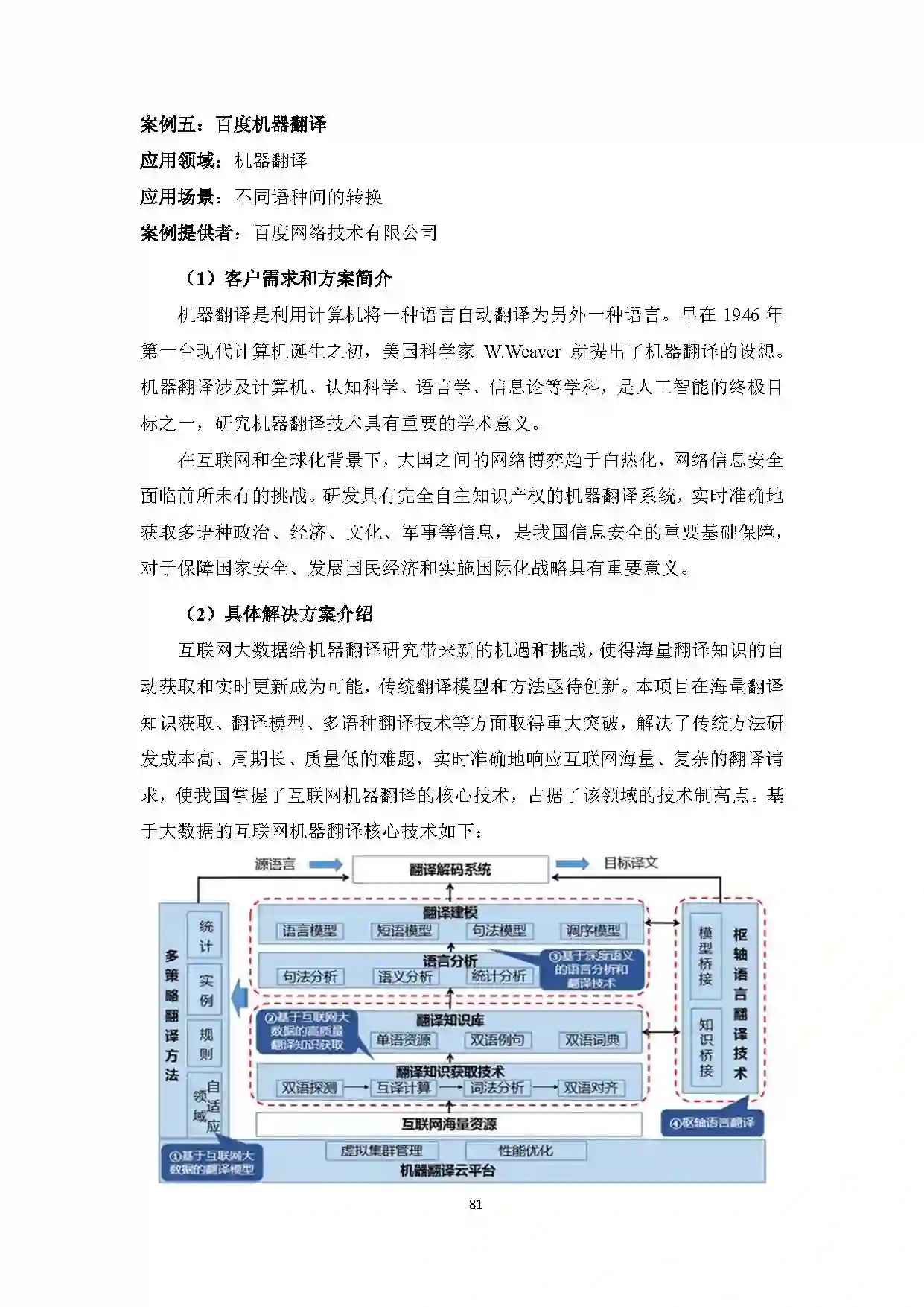 本白皮书并不预期成为人工智能领域的全面技术和产业综述,不求面面俱到, 仅针对目前人工智能领域涵盖的技术热点和产业情况进行分析,研究提出人工智 能标准体系。人工智能标准化工作尚处于起步阶段,本白皮书只作为人工智能领 域技术、产业和标准化之间初始的连接纽带,并将在今后不断根据技术、产业和 标准化的发展需求进行修订。本白皮书不过多地给出人工智能领域观点性的陈述, 力求以较为浅显易懂的语言和方式进行阐述。