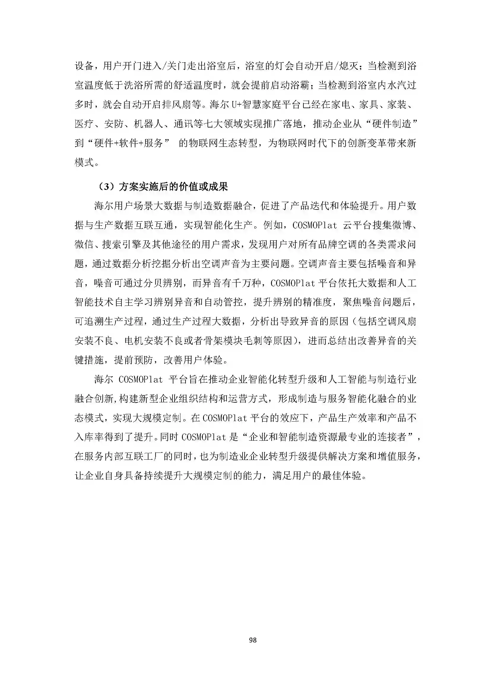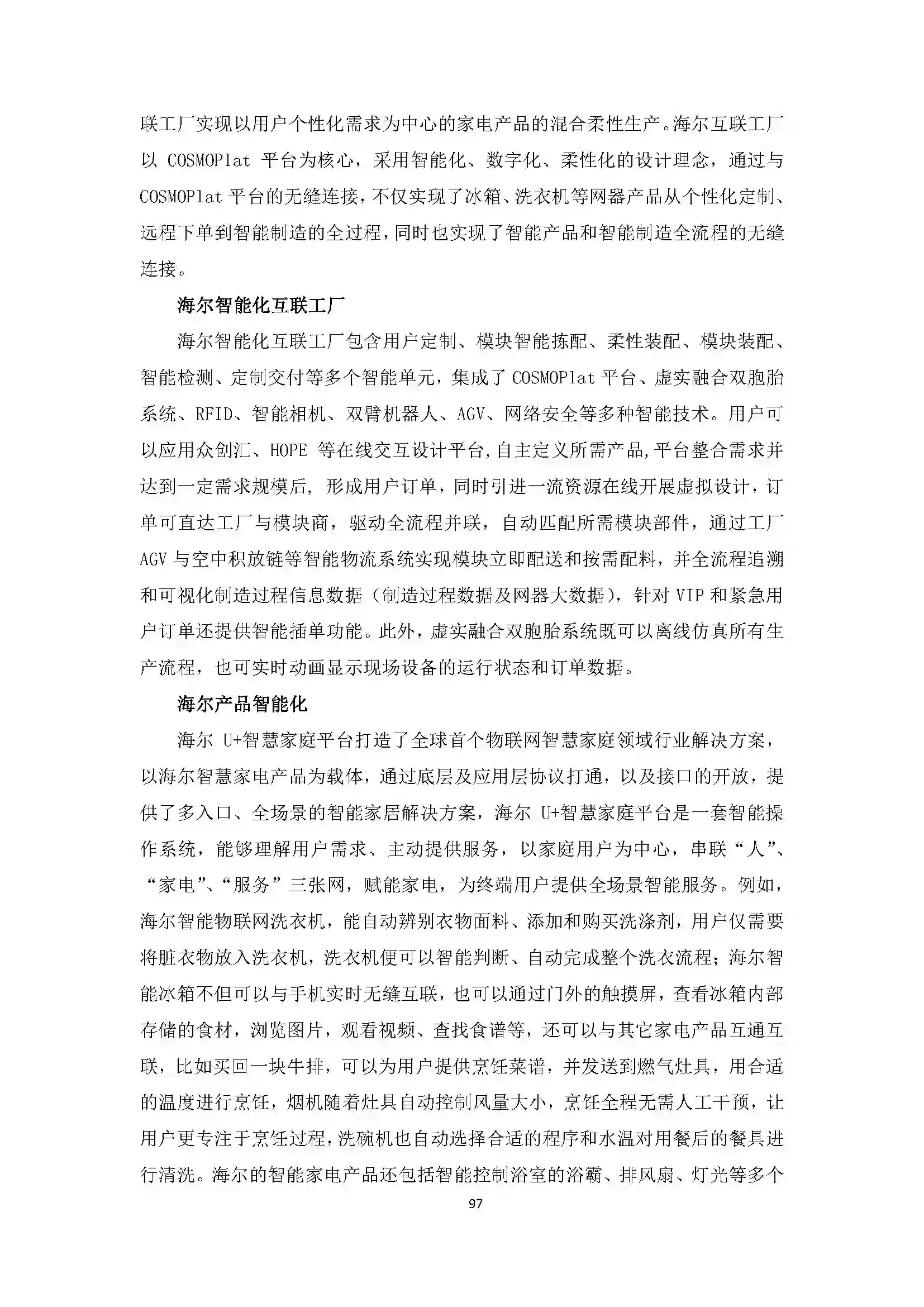 智能家居以住宅为平台,基于物联网技术,由硬件(智能家电、智能硬件、 安防控制设备、家具等)、软件系统、云计算平台构成的家居生态圈,实现人远 程控制设备、设备间互联互通、设备自我学习等功能,并通过收集、分析用户行 为数据为用户提供个性化生活服务,使家居生活安全、节能、便捷等。例如,借助智能语音技术,用户应用自然语言实现对家居系统各设备的操控,如开关窗帘 (窗户)、操控家用电器和照明系统、打扫卫生等操作;借助机器学习技术,智 能电视可以从用户看电视的历史数据中分析其兴趣和爱好,并将相关的节目推荐 给用户。通过应用声纹识别、脸部识别、指纹识别等技术进行开锁等;通过大数 据技术可以使智能家电实现对自身状态及环境的自我感知,具有故障诊断能力。 通过收集产品运行数据,发现产品异常,主动提供服务,降低故障率。还可以通 过大数据分析、远程监控和诊断,快速发现问题、解决问题及提高效率。