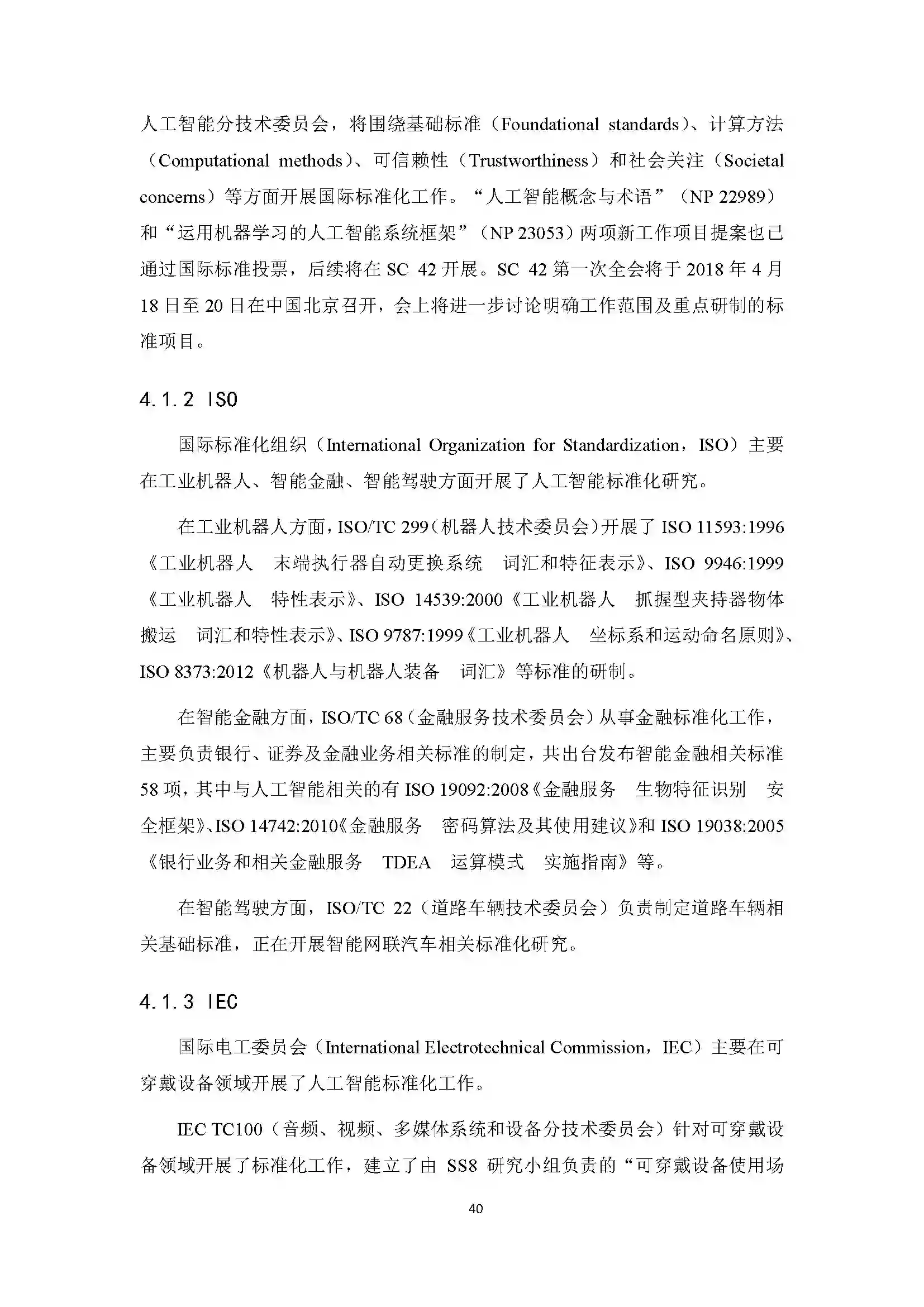 美国、欧盟、日本等发达国家高度重视人工智能标准化工作。美国发布的《国 家人工智能研究与发展策略规划》,欧盟发布的“人脑计划”,日本实施的“人工 智能/大数据/物联网/网络安全综合项目”,均提出围绕核心技术、顶尖人才、标 准规范等强化部署,力图抢占新一轮科技主导权。 我国高度重视人工智能标准化工作。在国务院《新一代人工智能发展规划》中将人工智能标准化作为重要支撑保障,提出要“加强人工智能标准框架体系研 究。坚持安全性、可用性、互操作性、可追溯性原则,逐步建立并完善人工智能 基础共性、互联互通、行业应用、网络安全、隐私保护等技术标准。加快推动无 人驾驶、服务机器人等细分应用领域的行业协会和联盟制定相关标准”。工信部 在《促进新一代人工智能产业发展三年行动计划(2018-2020 年)》中指出,要建 设人工智能产业标准规范体系,建立并完善基础共性、互联互通、安全隐私、行 业应用等技术标准;同时构建人工智能产品评估评测体系。