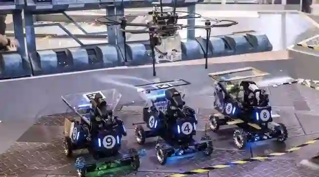 双方队伍使用前沿的人工智能算法,设计和制作全自动无人机和地面机器人,与敌方争夺赛场资源、射击对抗。最终通过团队配合取胜。