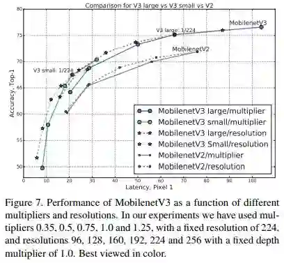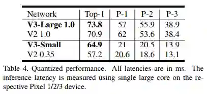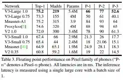 V3-Large取得了最高的精度,V3-Small 取得了V2近似的精度,速度却快很多。