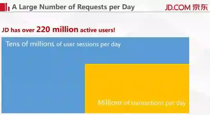 第二个非常严峻的问题就是访问量太大了。京东现在有超过 2.2 亿的活跃用户,单就 PC 端来说,每天 session 的数目大概都是在千万的量级,真正发生交易的 session 数目大概也有百万量级。这个系统其实只看发生交易的 session,一天大概要处理掉百万的访问,这对系统压力是非常大的。