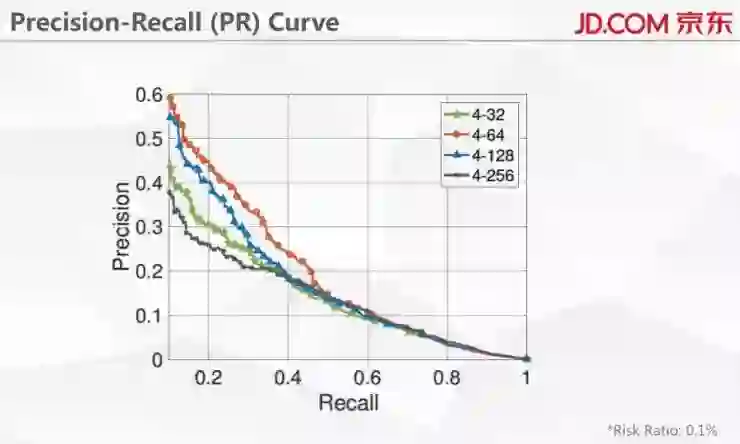 对于非平衡样本问题,用 PR 曲线能有效的看出模型性能。图中是初期的一个结果,现在的准确率比图中高很多。采用 4-64 的性能最好。