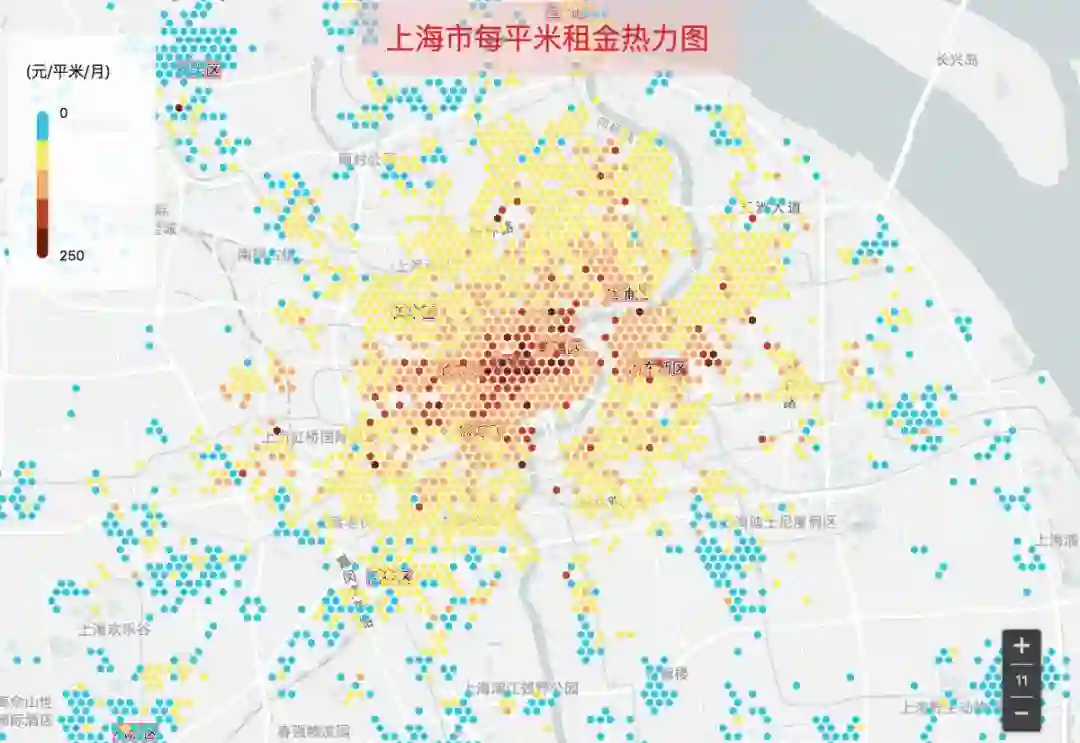 上海市只要地铁在700以内,每平米租金变化不大,700以上租金开始明显下降。