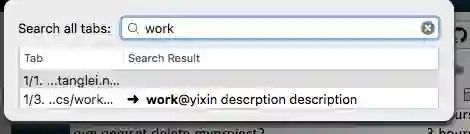 cmd + alt + e,在所有的 tab 中全局搜索,搜索出候选项后,再选择你想要进入的 tab。