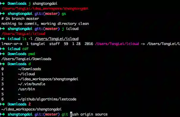 2. autojump: 这个也超级赞。会自动记录你 cd 过的目录,下次你直接 j keyword 就会自动 cd 到以 keyword 匹配的目录。输入 d 会展示当前会话访问过的目录,然后对应目录有标号,接下来按标号即可跳转。