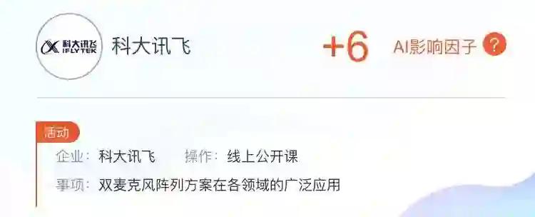 在雷锋网旗下学术频道 AI 科技评论的数据库项目「AI 影响因子」中,凭借讯飞病灶分割比赛优胜团队专访、讯飞与哈工大联合实验室刷新 SQuAD 成绩的突出表现、前 MSRA 副院长李世鹏任讯飞 AI 研究院联席院长,排在「AI 影响因子」前列。