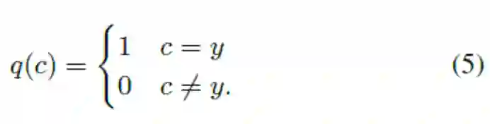 其中C是类的数量,而p(c)是标准中输入的预测概率。 p(c)由softmax层归一化,所以。q(c)是ground-truth。由于训练集中的每个人都属于单一身份y,因此q(c)可以定义为,