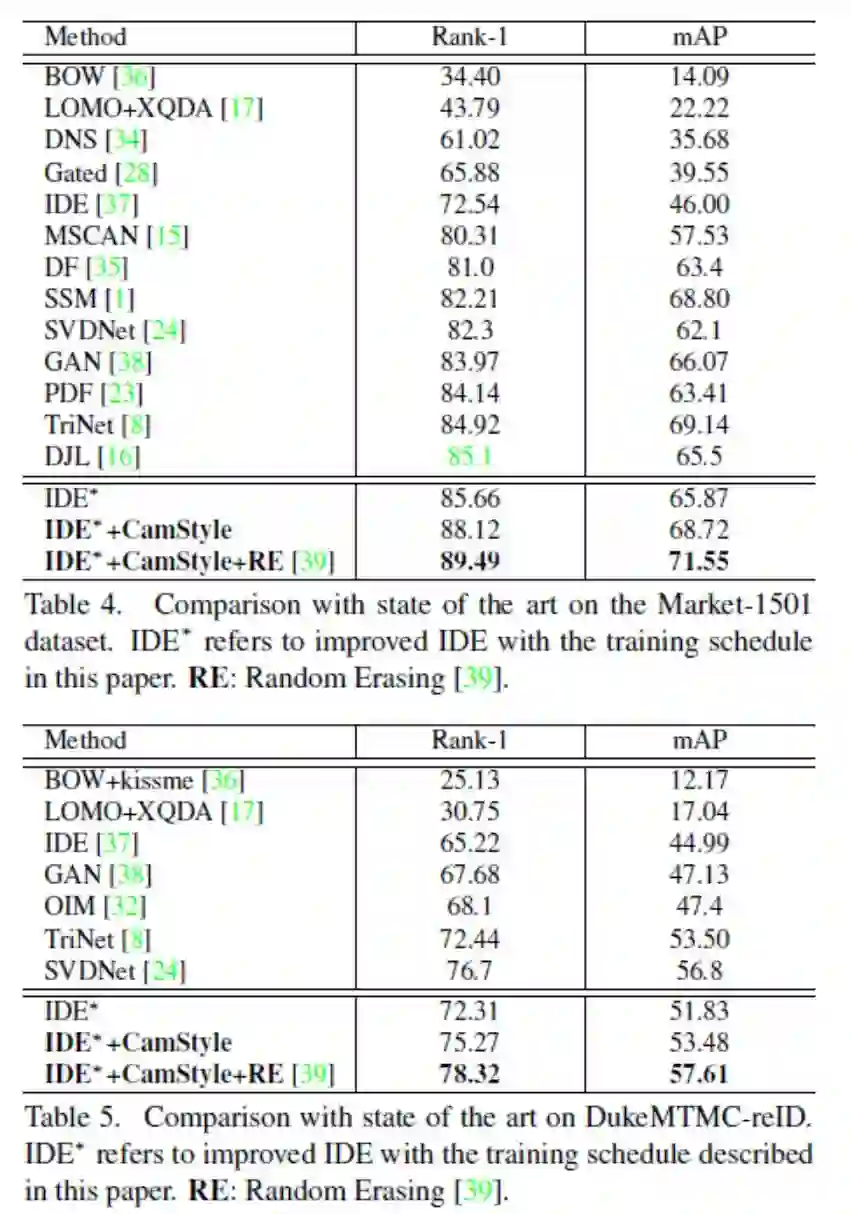我们使用了Market-1501和DukeMTMC-reID两个数据集进行验证。因为他们数据量足够大,而且每一张图像都提供了相机标签。