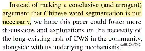 事实上,由于这篇论文提到的三个原因,加上团队小伙伴的影响(之前我对中文文本分词的执念还是相当大的),在用深度学习来解决NLP问题时,我已基本放弃了分词。因此,总体而言我还是很喜欢这篇论文,其进一步破除了我在中文分词上的“迷思”。但正如论文所说的(下图),我们还需要进一步评估分词的必要性,最好是能总结出一些经验法则,在什么情况下用word-based模型可能会更好(虽然这种情况发生的前提条件比较苛刻,比如手上有一个几乎能完美handle目标领域文本的分词器;加上预训练模型的广泛使用,word-based的市场可能会更小)。最后,在考虑放弃分词的时候,追本溯源,重新回顾一下分词这个任务的来源、定义、目的,也能加深我们对中文自然语言处理的理解。