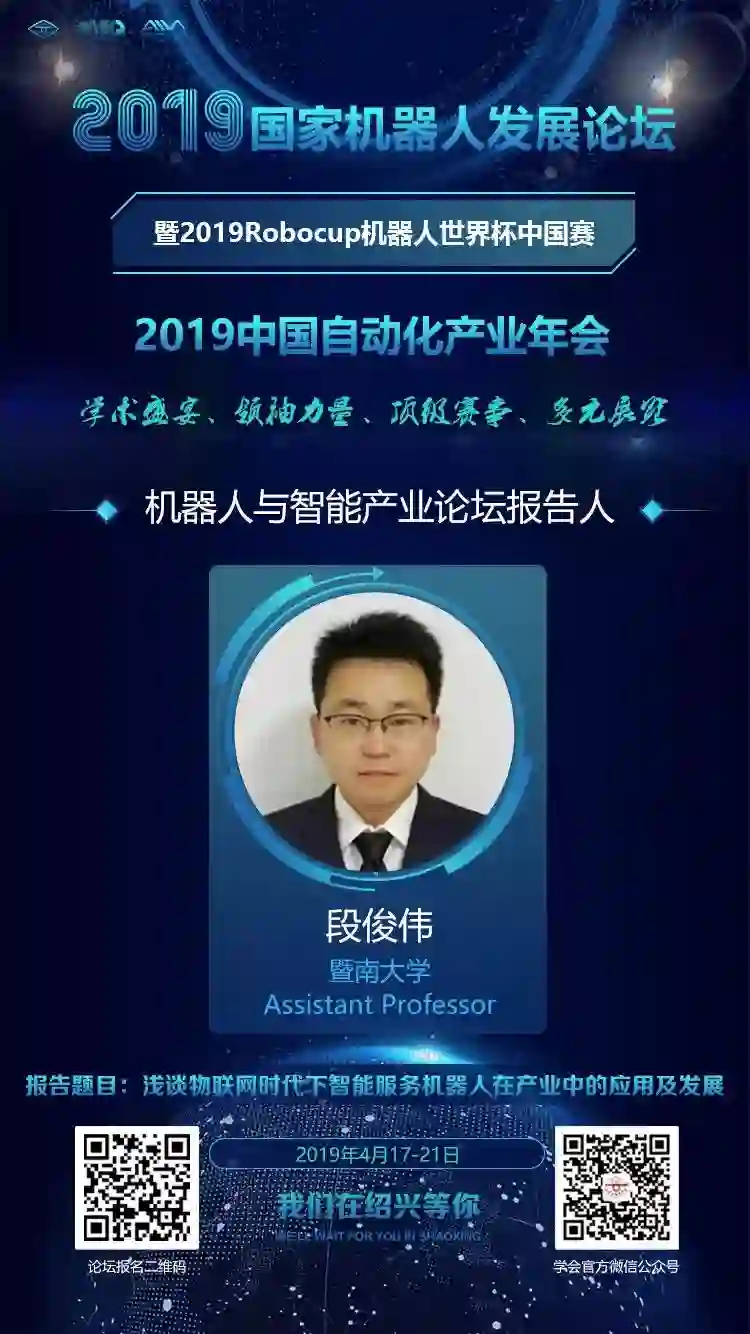 2019年国家机器人发展论坛将于2019年4月17-21日在浙江绍兴举办,敬请关注学会官方微信公众号和网站,了解最新论坛信息。