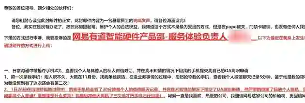 2 月 18 日,据澎湃新闻记者了解到,该员工控诉的部门领导为网易有道用户服务与运营负责人曹方,他在社交媒体发文称,承认自己使用员工手机中确有看到微信弹出与工作无关信息,并问询闲聊内容。“这点我确实做得不当,但抢手机等情况并不属实。”