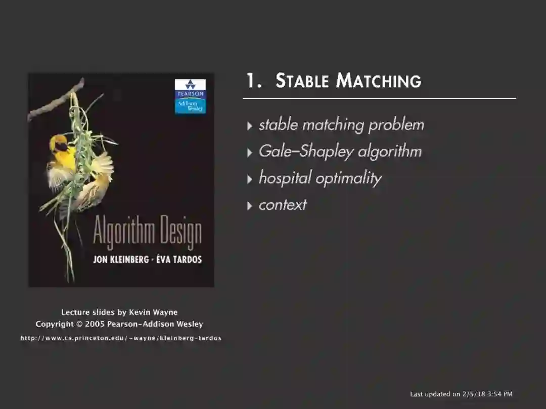 康奈尔大学Jon Kleinberg 与Éva Tardos 两位著名教授编著的算法设计《Algorithm Design》是关于算法经典的教科书。在普林斯顿大学wayne个人主页下配备了关于算法设计的相关课件,以及电子书864页pdf,值得查看学习。