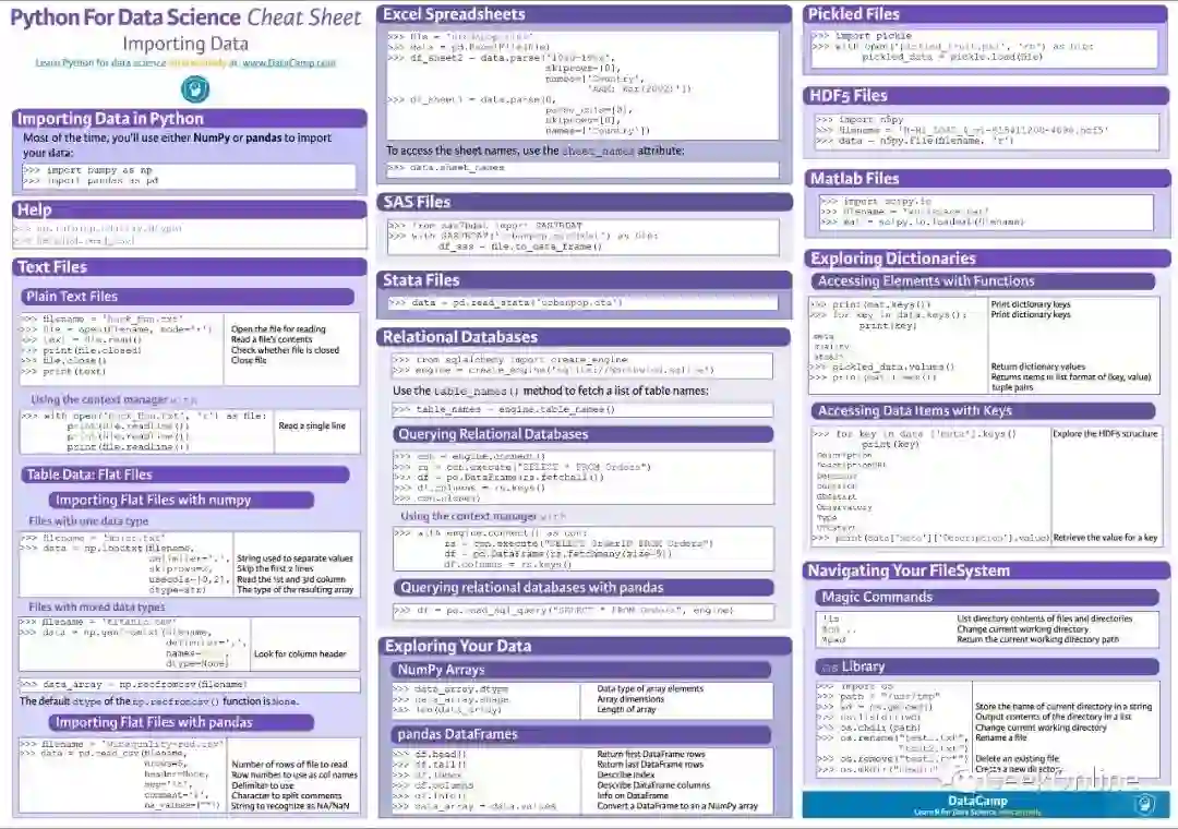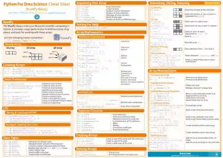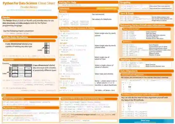 入门时,往往不知道怎么开始,而且经常忘记常用库的具体使用方法,那么这时候,你可能需要一种新的学习方式——小抄表(cheatsheet/flashcards)。