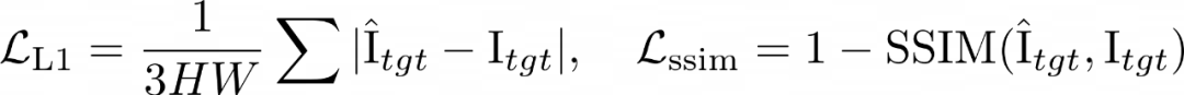 1.Reconsturction loss——计算渲染出的 target 图片与 ground truth 的差异: