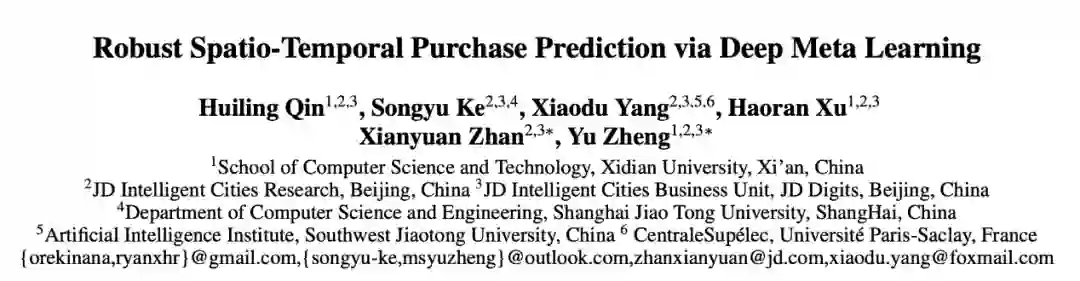 在2020年12月收录的AAAI 2021(CCF-A类)上,京东城市被收录了一篇名为《Robust Spatio-Temporal Purchase Prediction via Deep Meta Learning》的论文。该论文研究了如何通过深度元学习,结合城市中的各项信息以及历史的销量数据,对未来,特别是大型购物节期间,城市中各个区域不同时间段的销量进行预测。