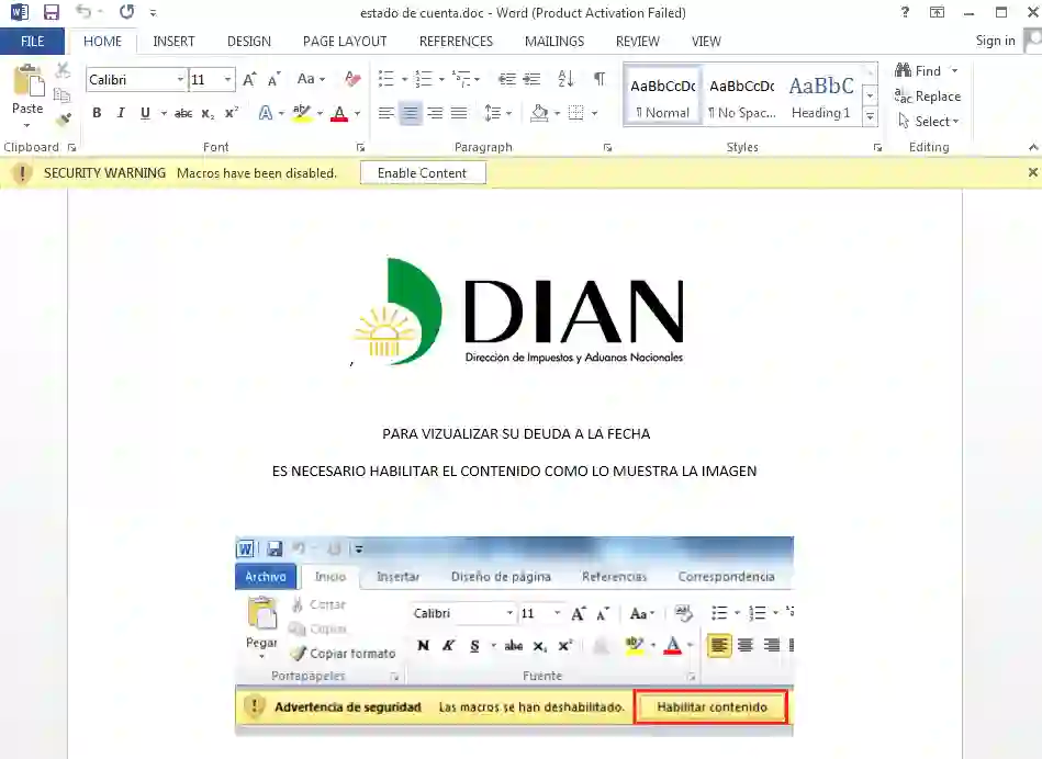 武器化恶意文档大多通过带有附加MHTML宏文档的malspam电子邮件分发。附件中包含了启用宏的后门,以便于之后的攻击。
