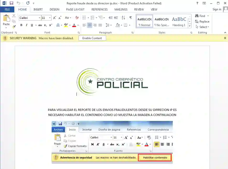 从哥伦比亚国家网络警察网站窃取的诱饵文件
