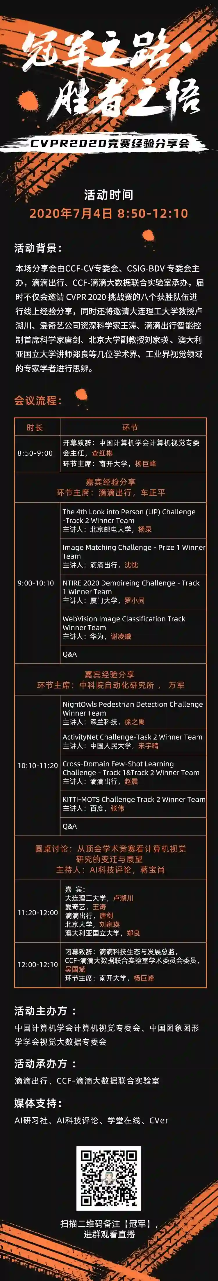 7 月 4 日,便有这么一场分享会等着大家,那就是“冠军之路,胜者之悟” CVPR 2020 竞赛经验分享会!