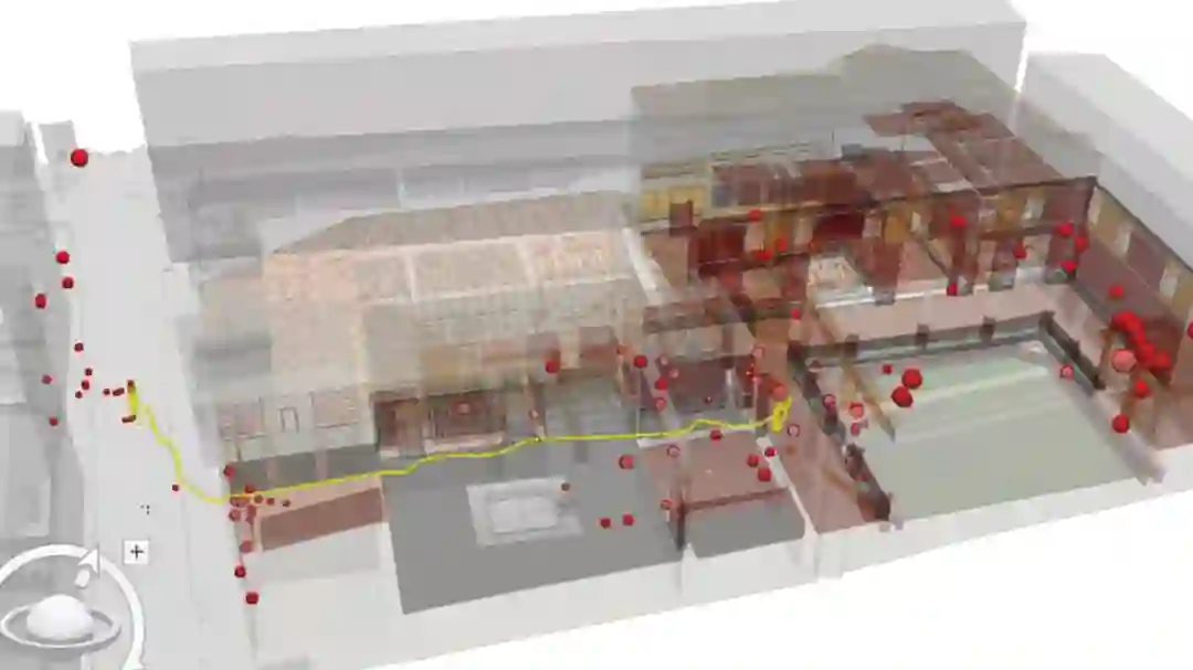 借助空间分析和眼动追踪技术,团队随后能够确定哪些建筑元素在游客身处虚拟空间中移动时引起了他们的注意,同时生成数据,输出到第三方软件中,并将输出数据导入3D GIS环境。