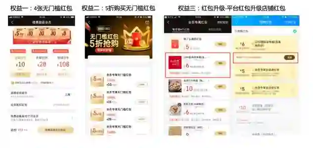 但饿了么的5元平台红包可以升级成6-10元的店铺红包,巧用了「羊毛出在猪买单,牛买单」的互联网思维,进一步降低会员权益成本。消费者为了省更多钱,非常愿意将平台红包升级为店铺红包,而商家需要支付一笔引流费给平台,原来平台每个红包要补贴2.5元,抵扣商家引流费后,平台只需要补贴0.5元就可以了。